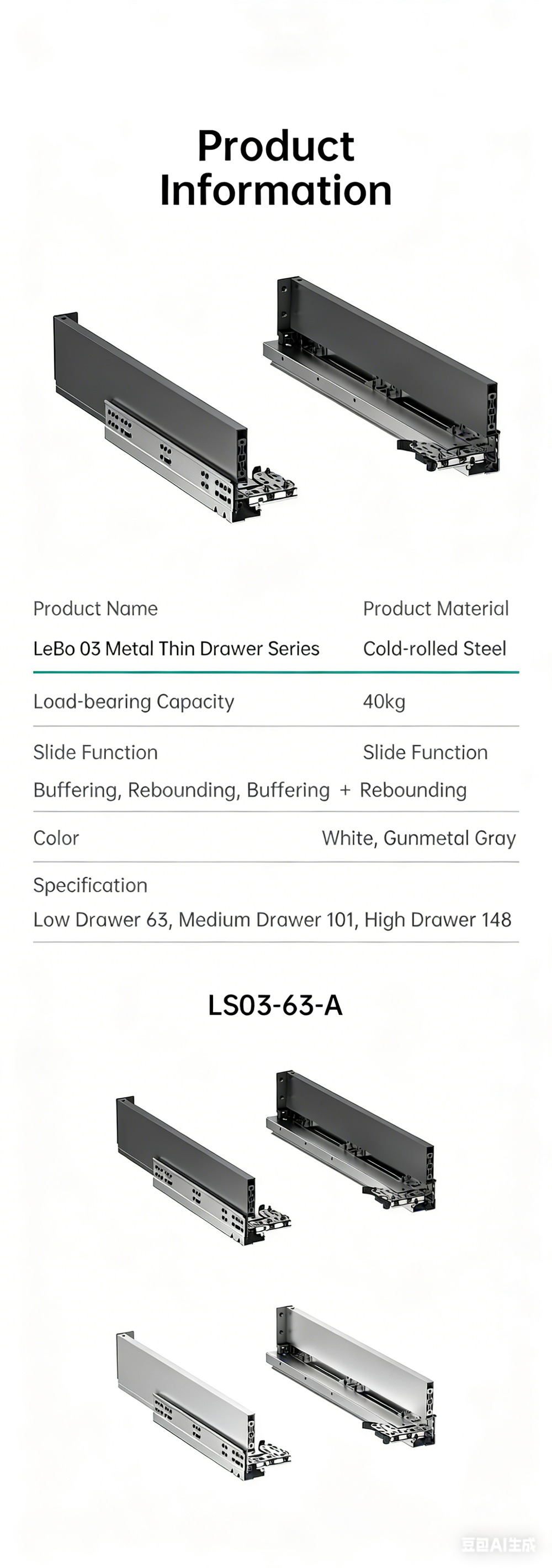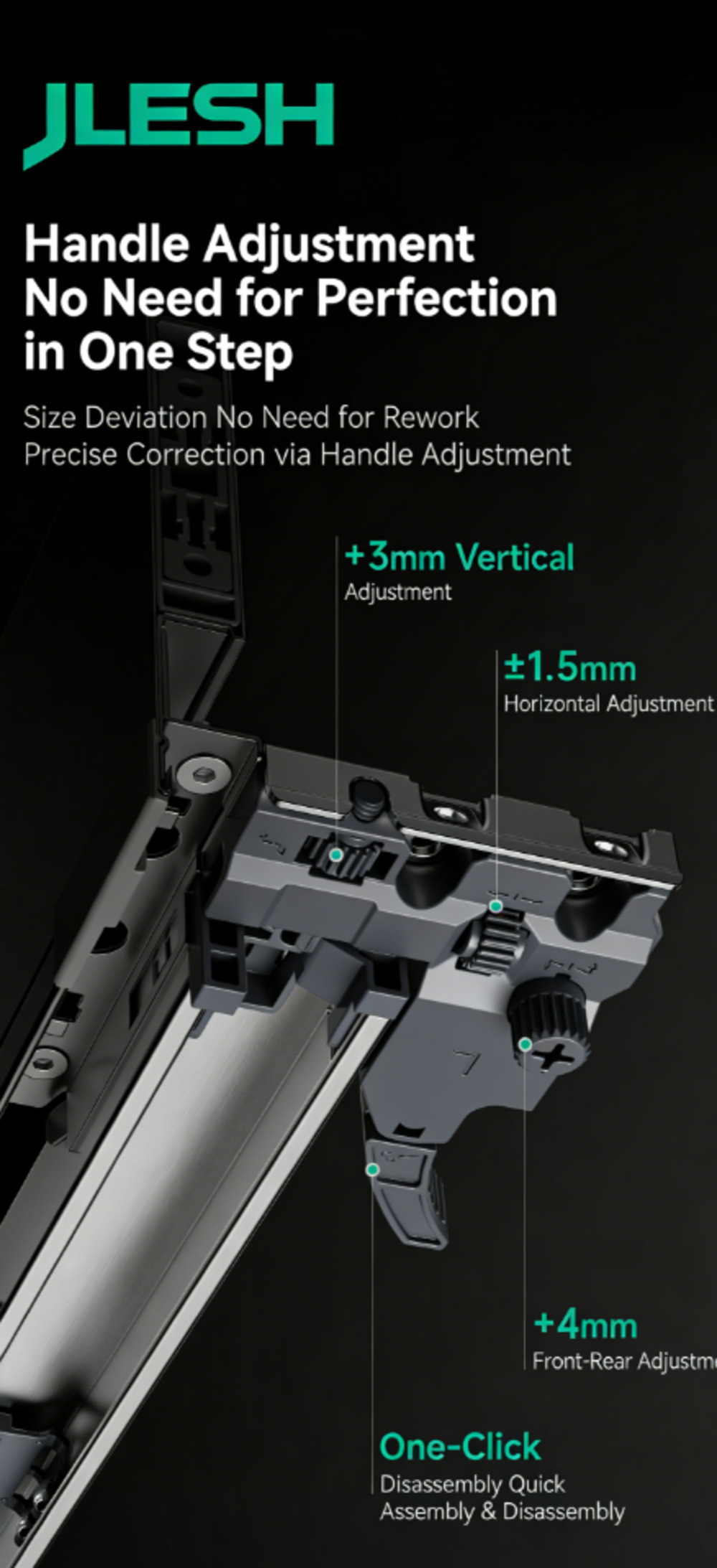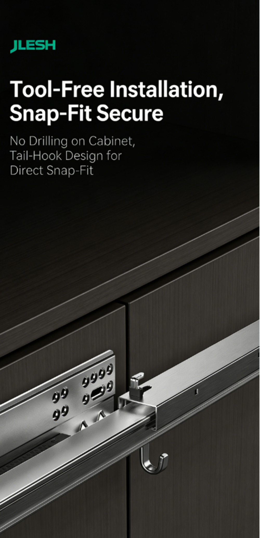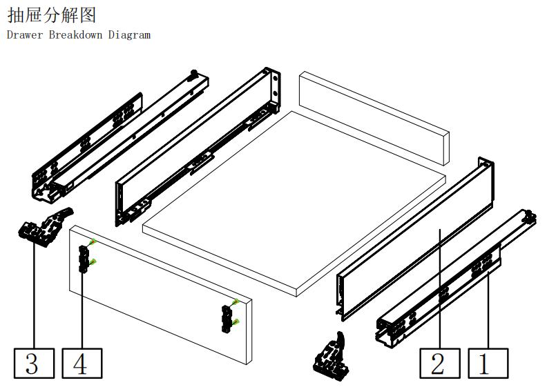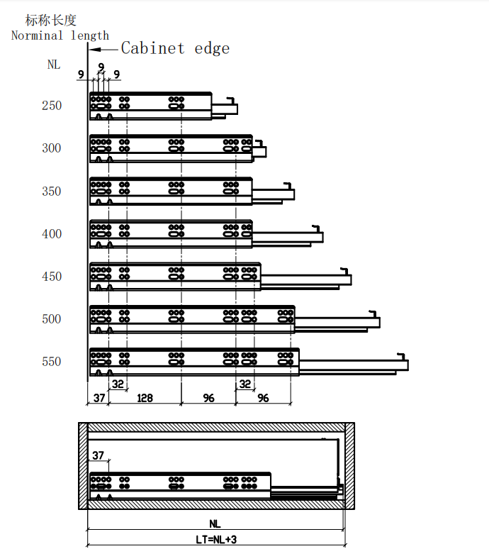 Полное выдвижение направляющих с доводчиком (совместимо со всеми типами направляющих, например, с механизмом открывания нажатием / механизмом открывания нажатием с доводчиком / механизмом открывания нажатием с ручкой).