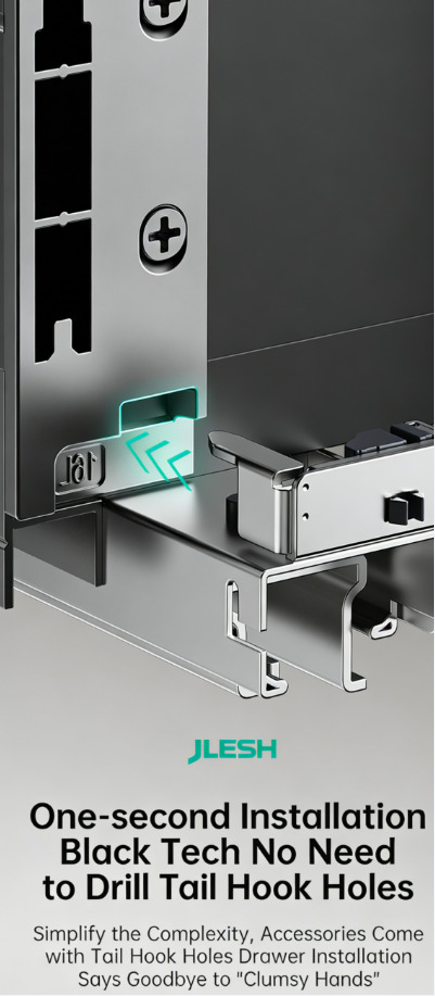 Полное выдвижение направляющих с доводчиком (совместимо со всеми типами направляющих, например, с механизмом открывания нажатием / механизмом открывания нажатием с доводчиком / механизмом открывания нажатием с ручкой).