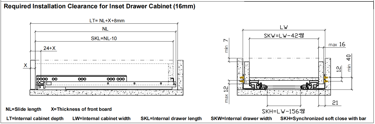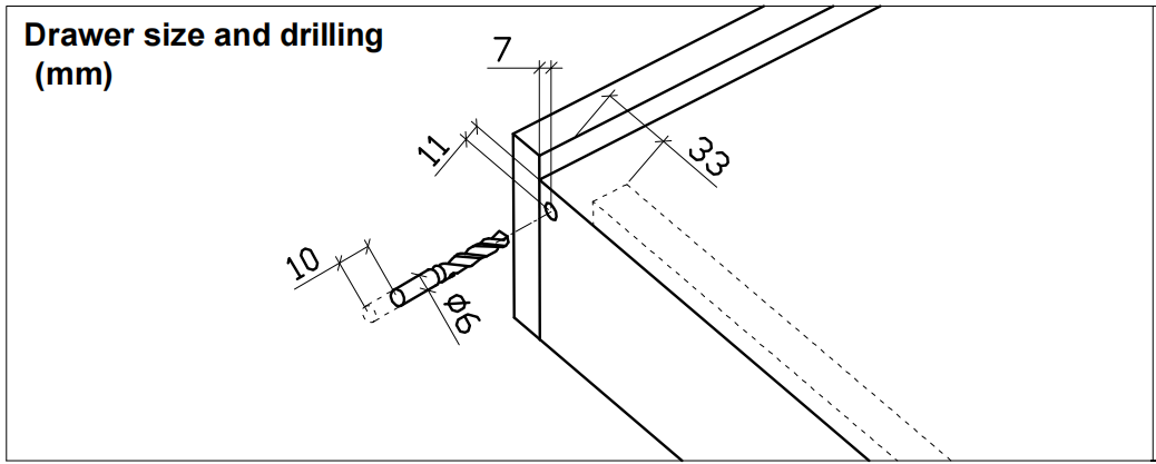Регулировка ширины ящика: ±1,5 мм.
